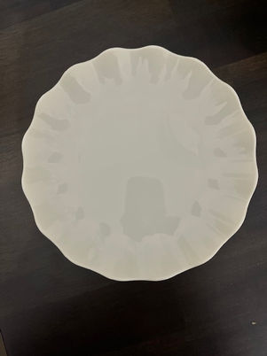 Please wash before return. Plastic. Ivory.